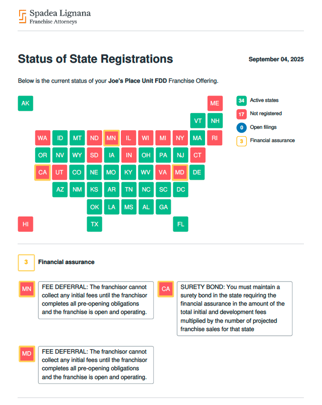 Spadea Lignana is thrilled to add this new feature to CAP, as it simplifies tracking and allows franchisors to manage franchise registrations more efficiently.
